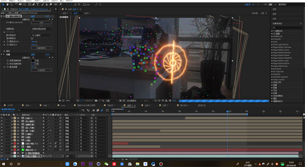 提起特效,人们往往想到的是好莱坞大片中那些震撼的爆炸,火花,或是炫酷的光线。粒子。这些好看的特效似乎离我们生活特别遥远。但实际上我们想要在自己的片子中实现这些炫酷的特效并不难,因为许多效果所需要的软件也仅仅就是那一两个而已。就如同奇异博士中大量出现的魔法阵效果,我们在看电影时会觉得很炫酷,飞溅的火花,充满能量的阵图。但仔细分析下,我们就会发现,片中的大量火花飞溅的效果,其实就是用我们AE合成软件中的particle插件制作,而魔法阵的做法则有更多,既可以用分型杂色(分形噪波)实现,也可以用saber插件来完成,还可以用from插件来制作。再配合上3d跟踪摄像机来进行反求,这么看下来我们所需要的软件也只是AE(Adobe After Effects)和PS(Adobe Photoshop)而已。所以我们看完电影后再被炫酷的特效震撼之余,也要仔细去分析下这些特效的本源,只要抓住本源,你也可以做出炫酷的特效。
